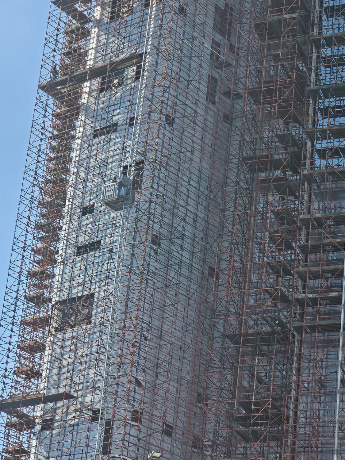 The GEDA 500 Z/ZP proved invaluable on the project thanks to its versatility. Designed for the tough demands of everyday construction sites, it can operate both as a pure material hoist and as a transport platform for people, made possible by its two independent control systems. With lifting speeds of 24 m/min in material mode and 12 m/min in passenger mode, the unit supports rapid construction progress.