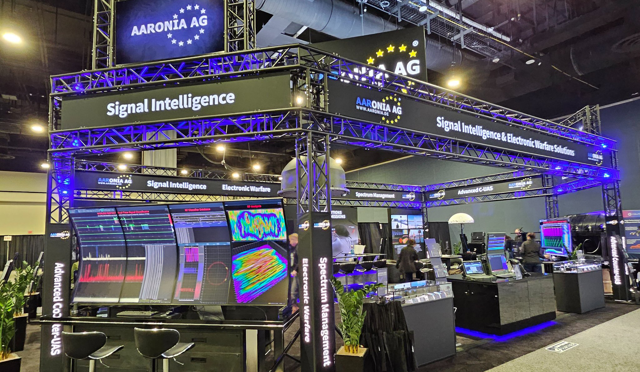 Specialists in electronic warfare, electromagnetic spectrum operations, cyber-electromagnetic activities, and information operations were equally impressed by the SPECTRAN® V6 Command Center. The world’s fastest real-time spectrum analysis solution impressed with its extremely fast broadband frequency monitoring. The same applies to the demodulation and decoding as well as subsequent classification of many signal types in real time. “The SPECTRAN® V6 Command Center is the ultimate solution for precise measurements, signal analysis, and signal location in outdoor use,” said Thorsten Chmielus, CEO and founder of Aaronia AG. “Visitors were particularly impressed by the first-class display of signals on the two 24” 4K monitors. And the combined resolution of 3840 x 4320 pixels, combined with a high-resolution display of the entire frequency range or simultaneous monitoring of multiple frequency bands in real time, never failed to amaze.” Peter May adds: “Equally surprising for the experts was the possibility of scaling almost any functionality as desired in addition to the bandwidth through hardware and software cascading, thus creating multifunctional solutions for customer-specific requirements.”